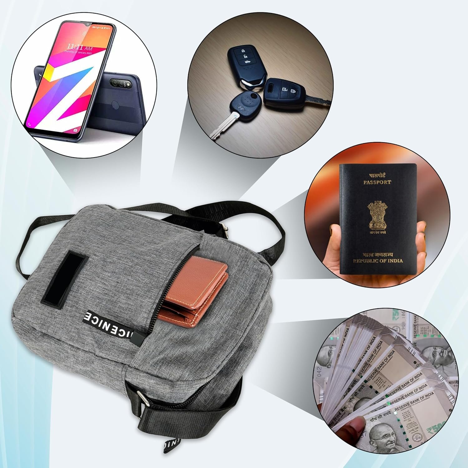 Storite Stylish Padded Mini Sling Cross Body Travel Bag for Men and Women, Side Bag With Adjustable Strap (17 x 4.78 x 19 Cm – Grey)
