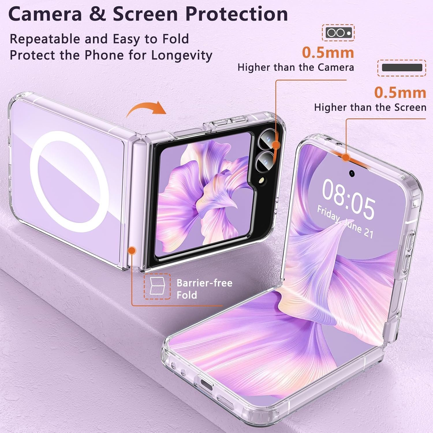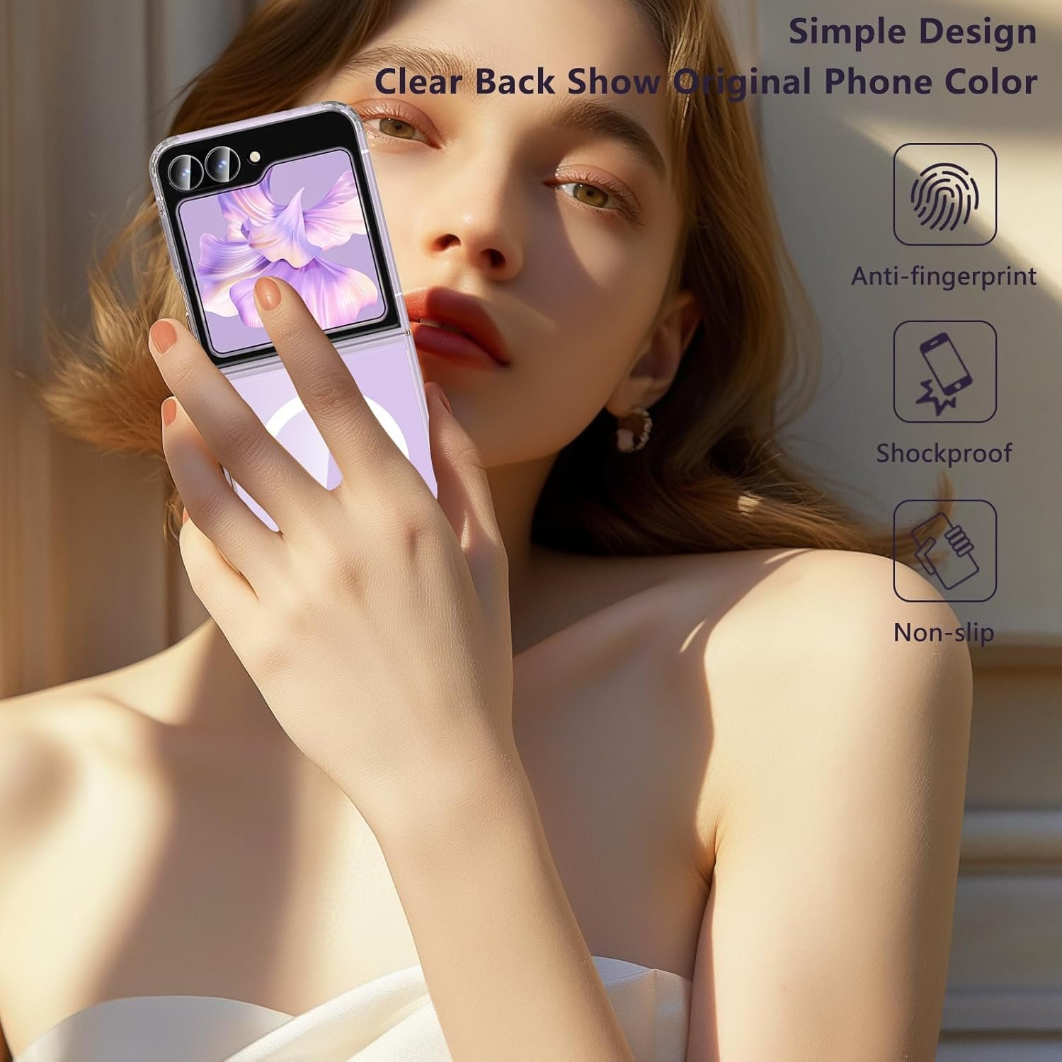 [Confirm Your Phone Model]: Clear magnetic phone case Only Compatible with Galaxy Z Flip 5 5G, it is not compatible with other models. Support wireless charging.