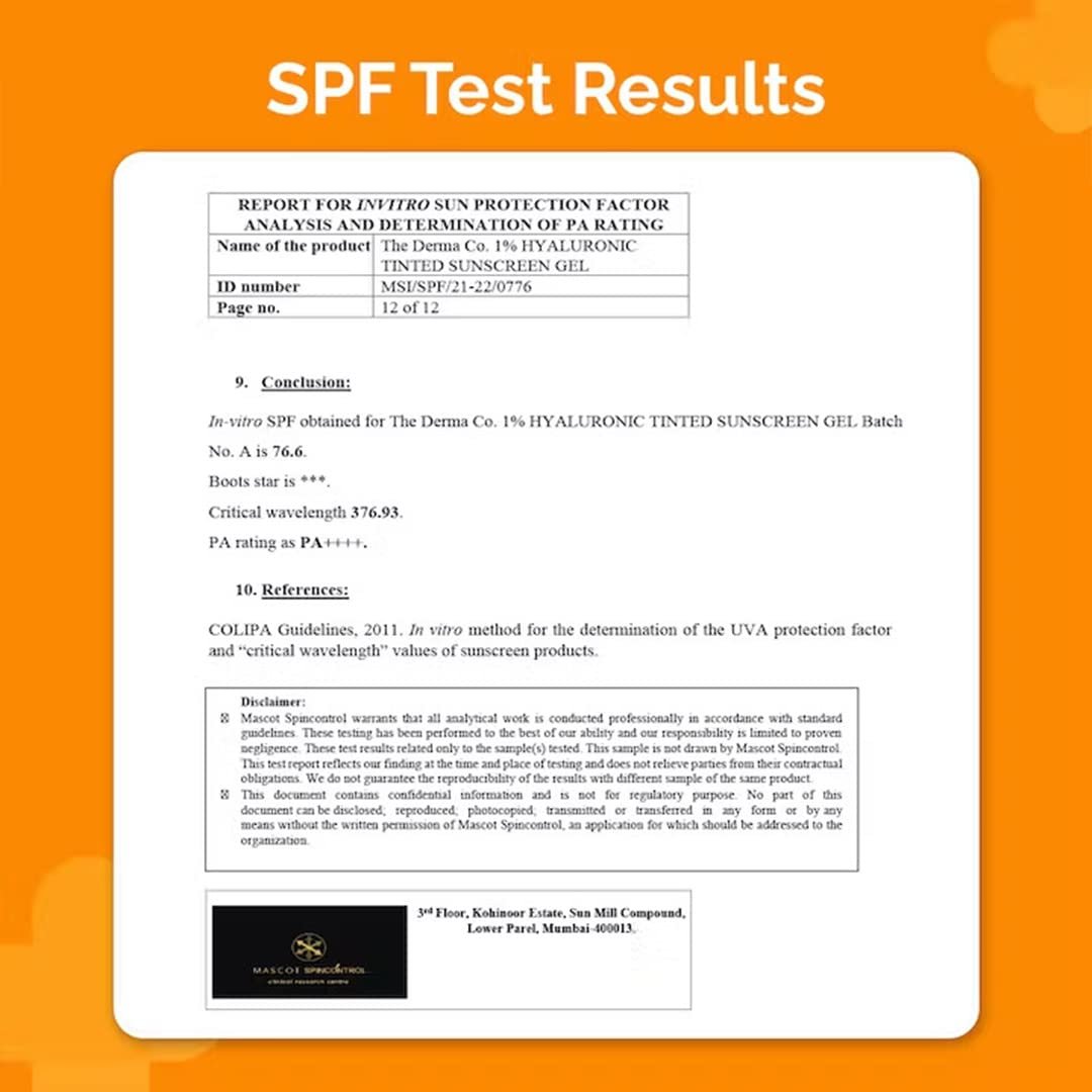 Broad Spectrum Sunscreen The 1% Hyaluronic Tinted Sunscreen Gel comes with SPF 60 PA++++ to offer the best protection from harmful sun rays.