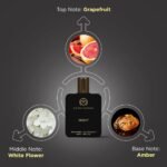 FRAGRANCE NOTES: At the first spray, sniff in the tanginess of citrus-rich grapefruit. After the fragrance settles on you nicely, the heart opens to an exotic touch of white flowers. And what lingers on you for the longest is the woody essence of amber.