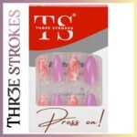 THR3E STROKES Press-On Nails,Fake Nails Manicure set Salon look Nails Includes 24 Nails, 1sheet gluetabs,1 Alcohol wipe,1 Manicure Stick, 1 Mini file. (PN-29)