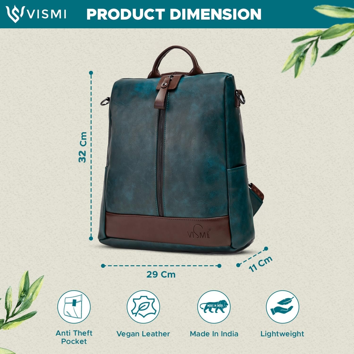VISMIINTREND Leather Backpacks for Women and Girls |Stylish | 13″ Laptop| Daily use, Ladies Shoulder Sling Purse |Work/Office/College/Travel Bags |Women’s Day Gifts|Rakhi Gift for Sister (Teal)