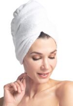 100% COTTON Towels are Better than Microfiber Towels in many ways – A Cotton Hair Towel is made of a Long staple Natural Fibre, has nice Thick Terry Loops, it has a Plush feel and is more Durable, its Safe for your Skin and Hair. It keeps your Hair held up High and hands free for a lovely Spa treatment, working on the computer or doing MakeUp. Its a Must Buy.