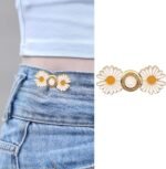 Xenos Instant Jeans Button Pins Waist Tightener Set, Make The Waist Fit for Skirt Pants Robe, No Sewing Required Adjustable Waist Buckle for Loose Jeans Pants (4 pcs New White Flower pin)