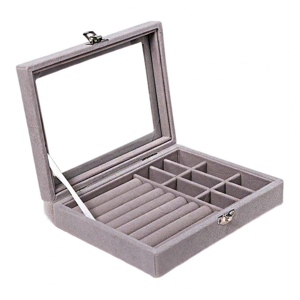 YouBella Jewellery Box Jewellery Organiser Box Velvet Clear Lid Jewelry Organizer, Ring Earring Bracelets Jewelry Storage Case, Portable Jewelry Box for Girls Women (Grey)