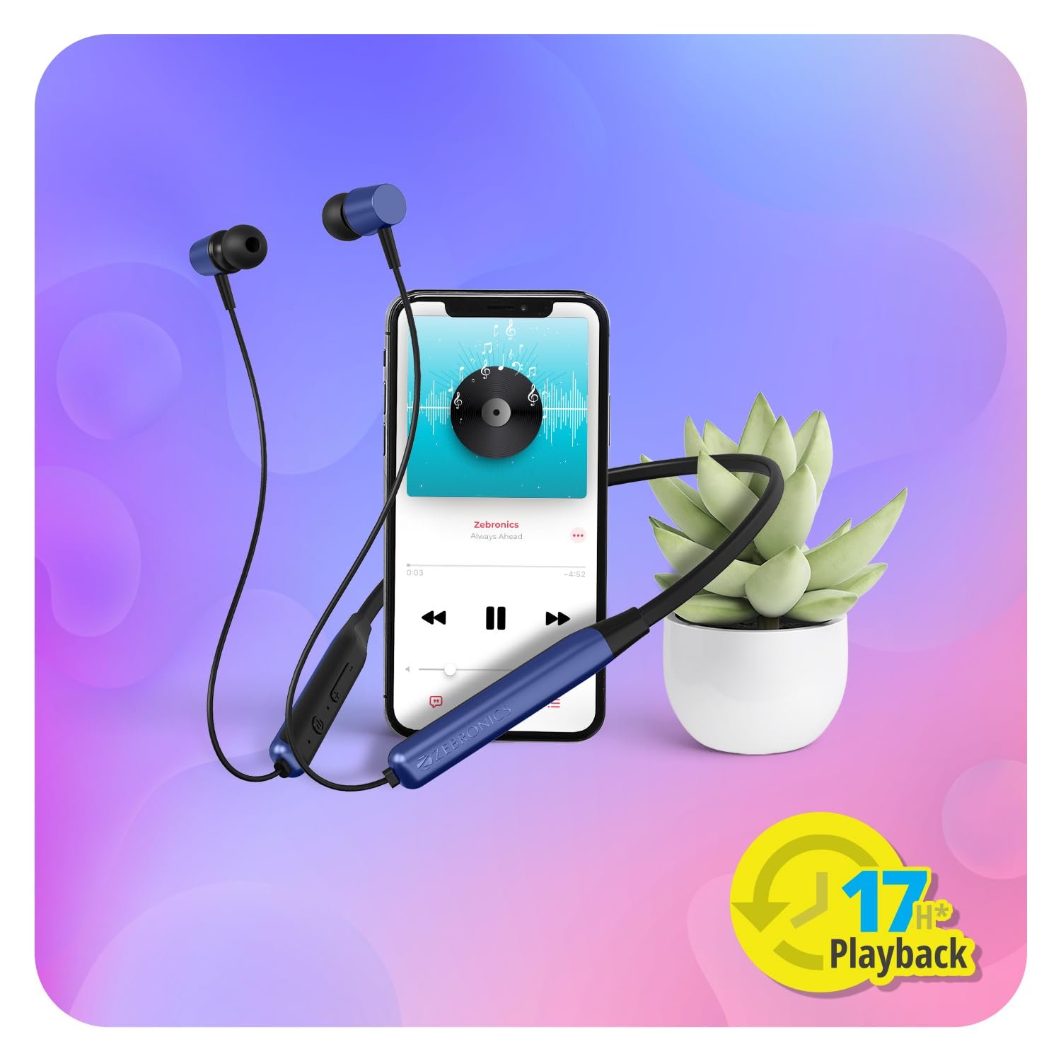 ZEBRONICS Zeb Evolve Wireless Bluetooth in Ear Neckband Earphone, Rapid Charge, Dual Pairing, Magnetic earpiece,Voice Assistant with Mic (Blue)