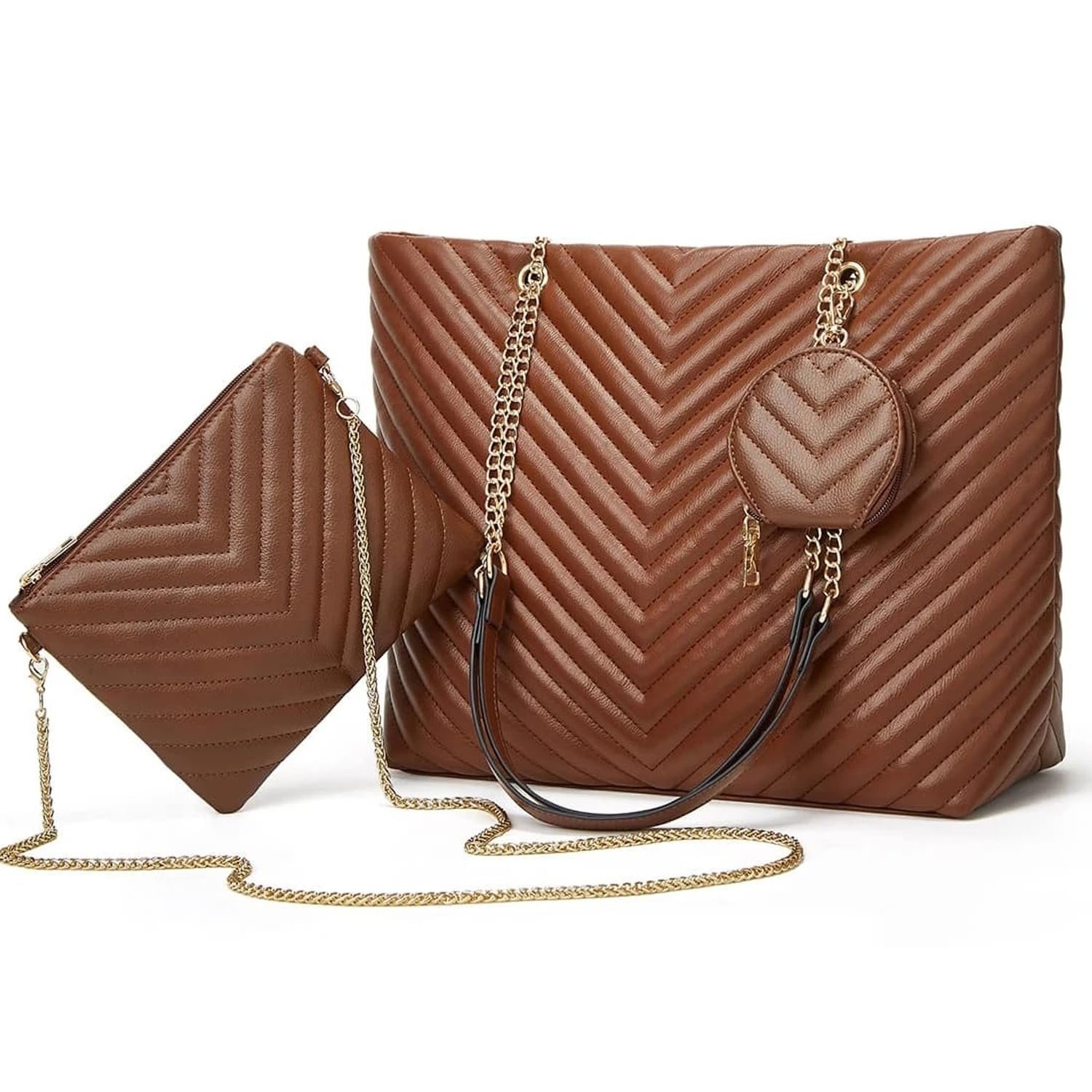 Fashionable Style: Featuring a stylish and versatile design with stitching techniques, this bag set includes a large shoulder bag, small crossbody bag, and coin purse to meet different needs.